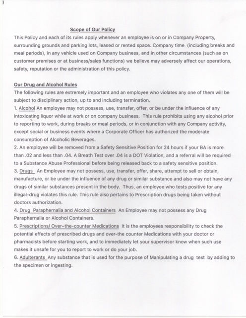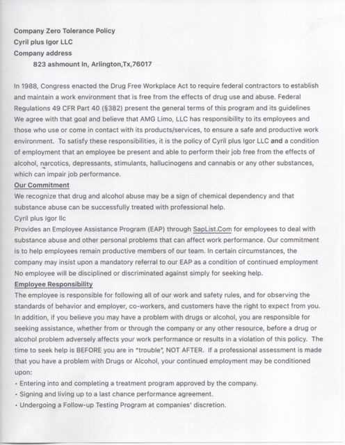 (2) the operating authority’s zero-tolerance policy for intoxicating substances