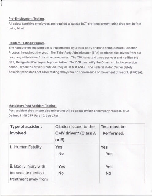 (2) the operating authority’s zero-tolerance policy for intoxicating substances